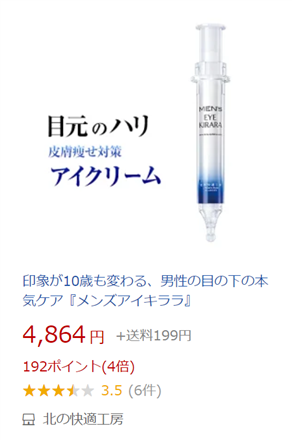 メンズアイキララの公式サイトの評価だと公平性に欠けるので、 amazonの評価を対象としました。